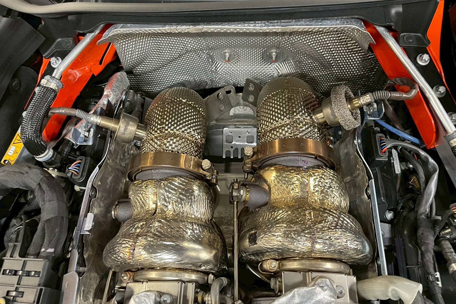 AMG GTブラックシリーズにダウンパイプの取り付けと