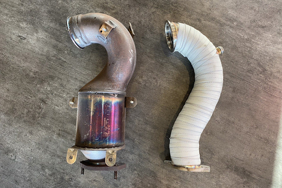W213 AMG E63にSportline製ロアリングキット、Sportline製ダウンパイプ、